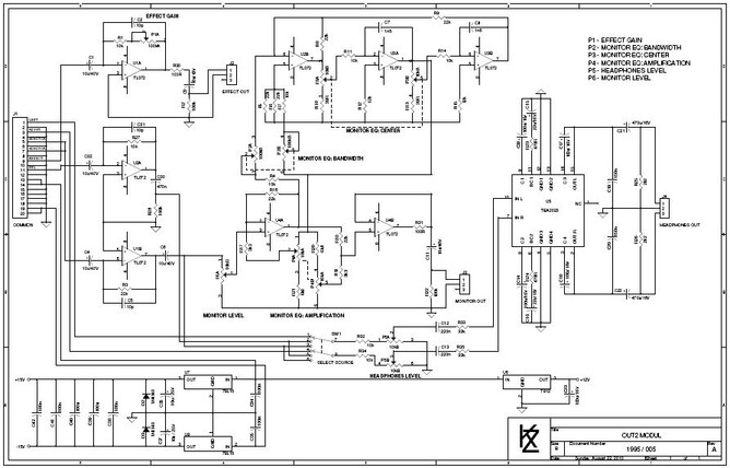 Ez a modul tartalmazza a keverő effekt kimenetét, a monitor kimenetet és a fejhallgató erősítőt.